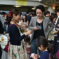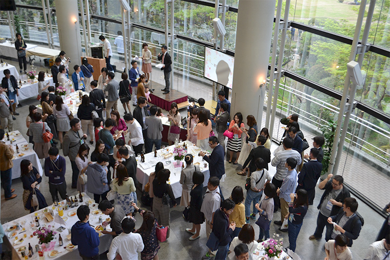 参加者たちは、バルーンアートや花のアレンジメントで春らしく彩られた大隈ガーデンハウスに集まりました。