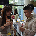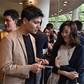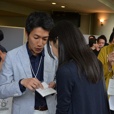 出身学部・研究科ごとに分かれ、カードに書かれた3項目の自己紹介のうち、一つの嘘を見破るゲームがスタート。さまざまな人とペアを組んで行われ、年次を超えた交流が生まれました。