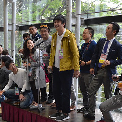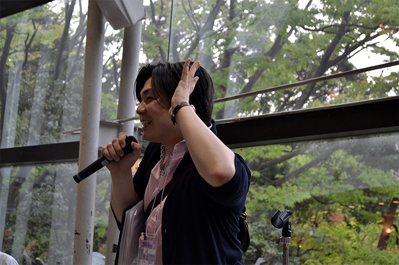 実行委員長によるあいさつで開会。今回の花見会のコンセプトやイベントに対する思いが伝えられました。