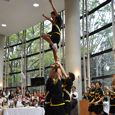 最後は、男子チアリーディングチームSHOCKERSが迫力のあるパフォーマンスを披露。参加者からは大きな歓声が上がりました。閉会後は年次ごとに2次会へ。大盛り上がりの1日となりました。