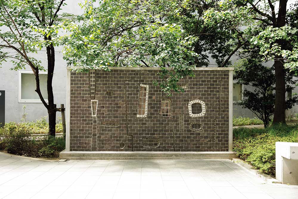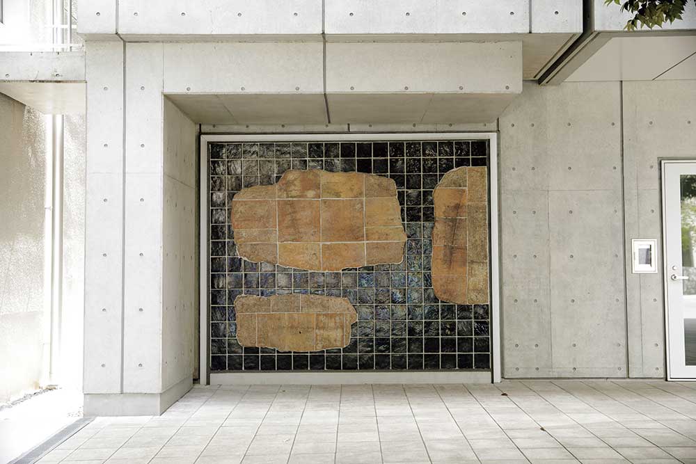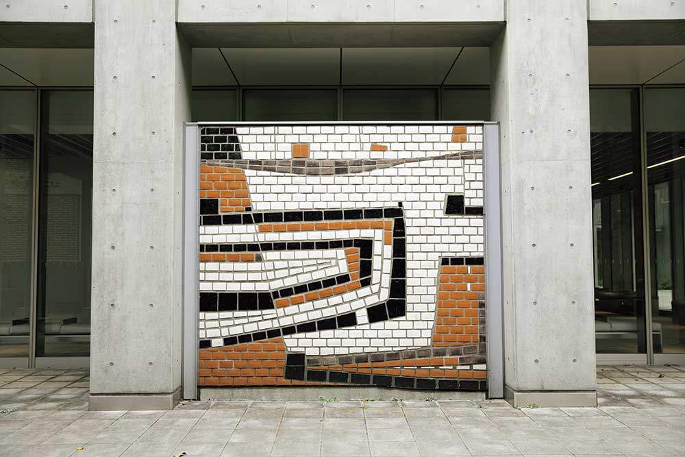旧33号館高層棟1階北面を飾っていたタイルレリーフ。ほぼ旧状のまま切り取られ、新高層棟の北側に再設置された。