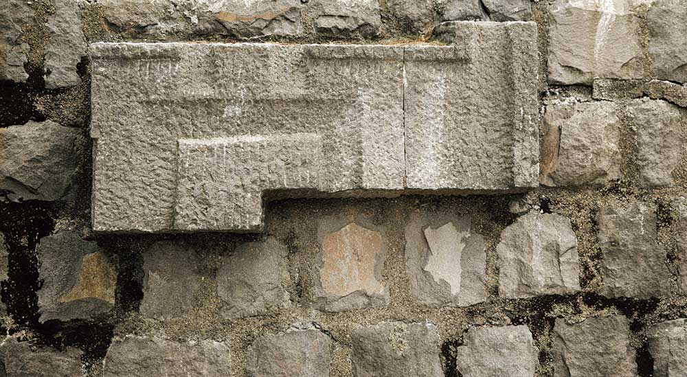 戸山キャンパスのスロープ側面は石垣状になっているが、そこにも辻晉堂の彫刻が認められる。