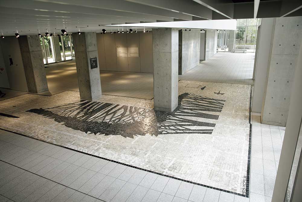 旧33号館高層棟1階のエレベーターホールに設置されていた長谷川路可(1897~1967)のデザインによる床モザイクを再設置したもの。長谷川路可は武蔵野美術学校(武蔵野美術大学の前身)で教え、学生たちとフレスコ(Fresco)やモザイク(Mosaic)を研究する「FM」グループを結成しており、このグループによりこの床モザイクは作成された。