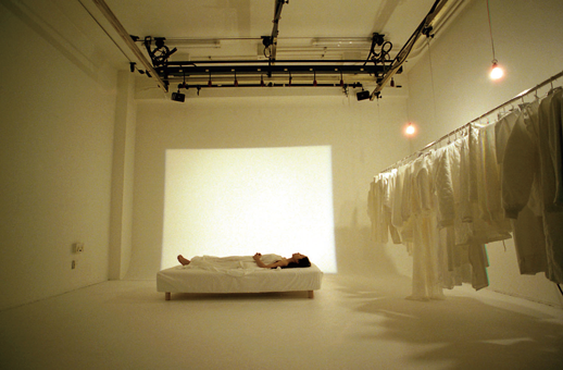 プロジェクションマッピングという概念が根付く以前の05年に「砂に書いた名前をさらう静かな波」をテーマに手掛けた、波打ち際を表現した映像を用いたインスタレーション
