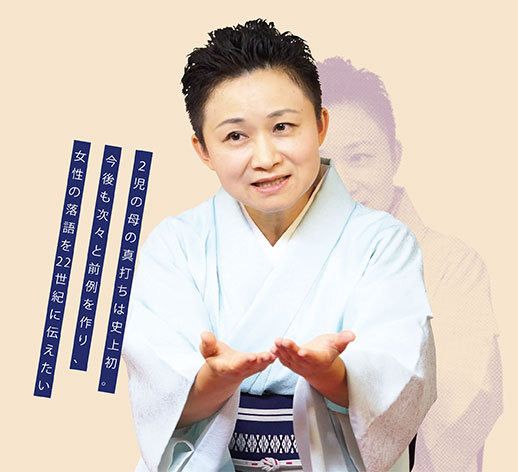 2児の母親として真打ちになった落語家は、私が初めてです。毎日子育てをしながら高座に上がり続けていますが、1日の時間のやりくりはパズルのよう。子育てとの両立で日本一忙しい噺家でしょう(笑)。絶対数が少ない女性は、寄席でトリをつとめたり、いつでも寄席に出ていたりする前例も少ないので、これからも史上初をどんどん作っていきたいです。それは、とてもやりがいのあること。これからもいろいろな努力を重ねていきますが、苦労をまったく感じさせずにふわりと高座をつとめて、「今日も楽しかった」とお客さまに喜んでいただきたいですね。
