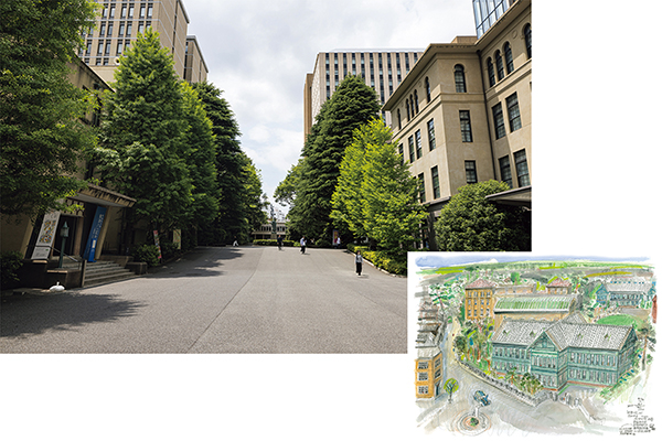 イラスト=藪野健「 昭和6年初夏のキャンパス」