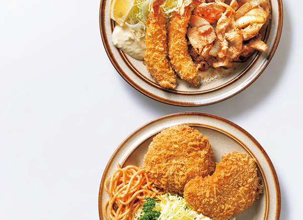 そのしょうが焼きにエビフライが付く「海老フライ・しょうが焼き」が人気だ。使用するエビはブラックタイガー。衣を素早く付け、スッと油に放つと、粒立つ泡がフライを包み込む。完成したエビフライはかなり大ぶりなのに、衣は薄めで身の味もしっかり。ソースはむろん合うが、醤油をかけると、エビの甘みがくっきり立つ。スパイシーなしょうが焼きと取り合わせるには、確かにベストな選択かもしれない。