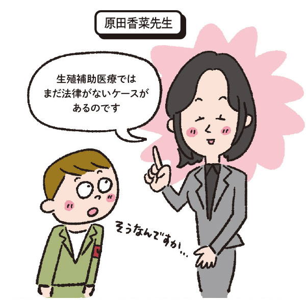 原田 生殖補助医療法が2020年に民法特例法として成立しました。提供卵子によって懐胎し出産した場合は、出産した女性を子どもの母と規定するなど、第三者のドナーが関わるケースでは、今国会でも新法案が審議されているのですが、夫婦間での生殖補助医療に関してはまだ法律がないんです。