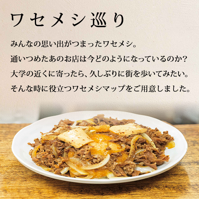 現在のワセメシマップ。校友の思い出とともにお楽しみください。