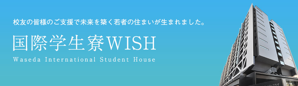 WISH(Waseda International Student House)は、中野国際コミュニティプラザ内に2014年3月にオープンした国際学生寮です。全国各地、さらには世界中から集まった約900人の学生、留学生が共生しています。多様な価値観を持つ学生たちは、共に学び、生活をする中で相互理解を深め、グローバル社会で必要不可欠なコミュニケーション能力を磨いていくことでしょう。「Waseda Vision 150」にも掲げられている、グローバルリーダー育成の拠点となることが期待されています。