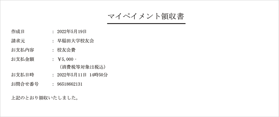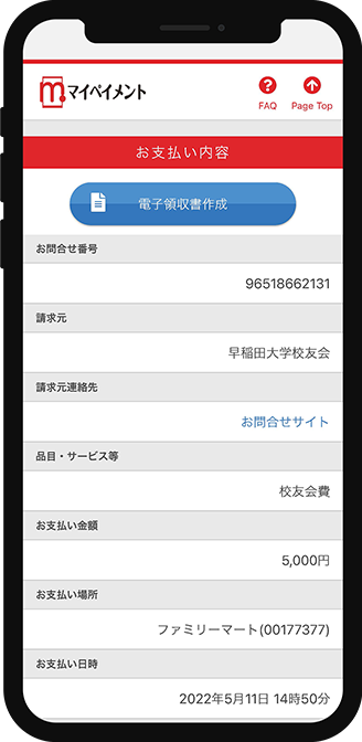 - ・「電子領収書作成」ボタンをタップすると、下記のような電子領収書が、PDF にて取得できます。