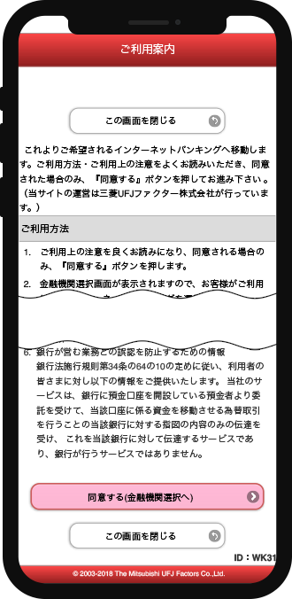 利用可能金融機関の詳細は、三菱UFJファクター株式会社のウェブサイトをご参照ください([情報リンク]欄に〇が付されている金融機関がご利用可能です)。
