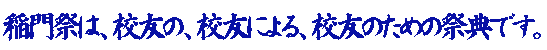 早稲田を愛するみなさん、校友のみなさん、来年の稲門祭にも是非いらしてください。心よりお待ちいたしております。