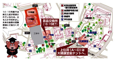 福引抽選の結果、上位賞(A賞〜F賞)当選者は福引抽選終了後15分以内に大隈講堂前のテントへおいでください。