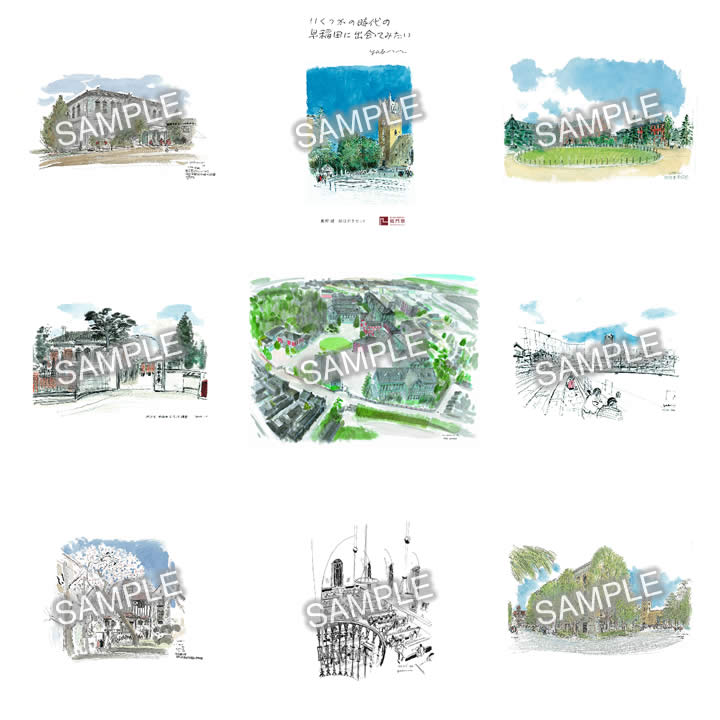 思い出のキャンパスが描かれた絵はがき集。24枚セット。 -