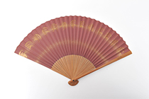 蘇芳色は印刷ではなく手染め、模様は型染めの技法で、どちらも職人による一本一本が手作り仕上げの扇子です。日本橋伊場仙謹製。
