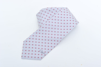 シルバーをベースに、早稲田カラーであるエンジの小紋柄。ビジネスでもカジュアルでも使用できるハイセンスなネクタイです。