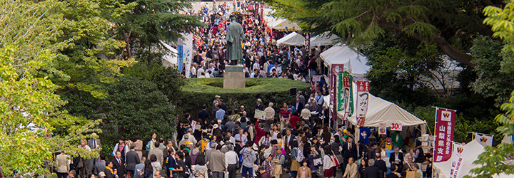 今年のテーマは「Welcome to Waseda Wonderland ~人・国・時を超える、進取の聖地~」です。創造性と先進性に溢れ、和と洋・静と動がミックスした魅惑に満ちたテーマパークです。10月23日は、ぜひ早稲田の杜にお気軽にお越しください。