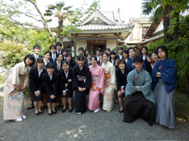 大学公認サークルの茶道研究会が運営し、完之荘の八畳敷にて茶席を設けます。当日、来場者には30分程の薄茶席に入っていただきます。道具は早稲田にちなんだものを、お菓子は稲茶会・千代田稲門会・1968年次稲門会所属のお菓子処「さゝま」が協賛します。薄茶席に入らない方にも呈茶を用意しており、抹茶・お菓子のみ提供します。