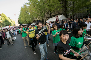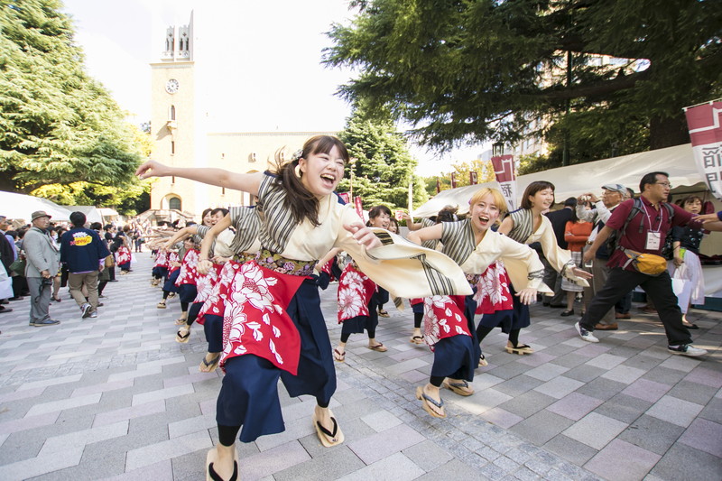 応援部、下駄っぱーず、ニューオルリンズジャズクラブ、バンザイ同盟、ラテンアメリカ協会の現役学生が3号館前特設ステージからキャンパス内を練り歩く、早稲田大学の今を体現するパレードです。応援部の校旗行進に始まり、アメリカのデキシーランドジャズ、ブラジルのサンバカーニバルの国際色豊かなパレードを楽しんでいただき、日本の伝統をグローバルに展開する、まさにWonderlandと言うべき下駄タップダンス、バンザイ同盟のパレードに未来を感じてください。