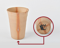 使うほどに味が出る、落ち着きのある色合いの備前焼。ビールを注いだときにできる泡は、きめ細かくなめらかです。底面に校友会のロゴ入り。