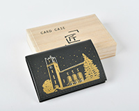 日本の伝統工芸、漆工芸技法である蒔絵で大隈講堂が描かれた名刺入れです。桐箱入りなので、ギフトにも最適です。