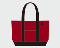 帆布製オリジナルトートバッグ。60cm幅のたっぷりサイズで使い方も自由。外側と内側にポケットがあるので、スマホや小物も素早く取り出せます。