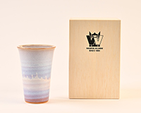 山口県萩市の伝統工芸品である萩焼を製造する窯元「萩陶苑」で製造された商品。長年使用すると、釉薬(ゆうやく)の細かいひび(貫入)にお茶の成分などが染み込み、風合いが変化する様子を「萩の七化け」と呼びます。土と釉薬の組み合わせで発色する優しい紫色のフリーカップ。