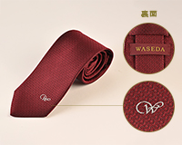 山梨県の真田織物が生産する、トレンドの無地を地紋柄で織り上げたネクタイ。早稲田大学のスクールカラーであるエンジ色の生地にW文字をあしらったシックなデザイン。校友で集まる際、ビジネス、普段着として身に着け、ワセダマンの誇りを胸に、さあ踏み出そう次の一歩を。