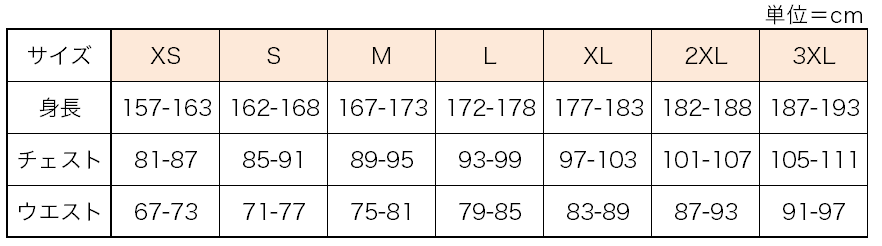 サイズ:XS,S,M,L,XL,2XL,3XL