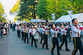 早稲田大学の今を体現する現役の学生によるパレード。まさに、「輝いている早稲田の後輩たち」をご堪能ください。ふるさと早稲田を体現した「応援部」の校旗行進に始まり、大島国を進化させる「バンザイ同盟」のバンザイ、「ラテンアメリカ協会」の国際色豊かなサンバ、最後は日本の伝統を世界に展開する「下駄っぱーず」の下駄タップダンスで締めくくります。3号館前特設ステージにて出発前のパフォーマンスから校内をねり歩き、帰還後のパフォーマンスまで、稲門祭に華を添えるカーニバルのパレードです。ステージ横には「いいねボタン」を団体ごとに設置し、来場者から最多いいねを獲得した団体を表彰します。表彰式の司会は放送研究会が担当します。