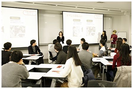 イベントに先立ち、会場(2階 CTLT classroom 1~3)にて、校友会組織委員を中心としたコーディネーターから趣旨説明が行われました。「本イベントを通して学生・校友の皆さんに校友会をもっと身近に感じ、いろいろなイベントに参加してもらいたい」という思いを参加者に伝えました。