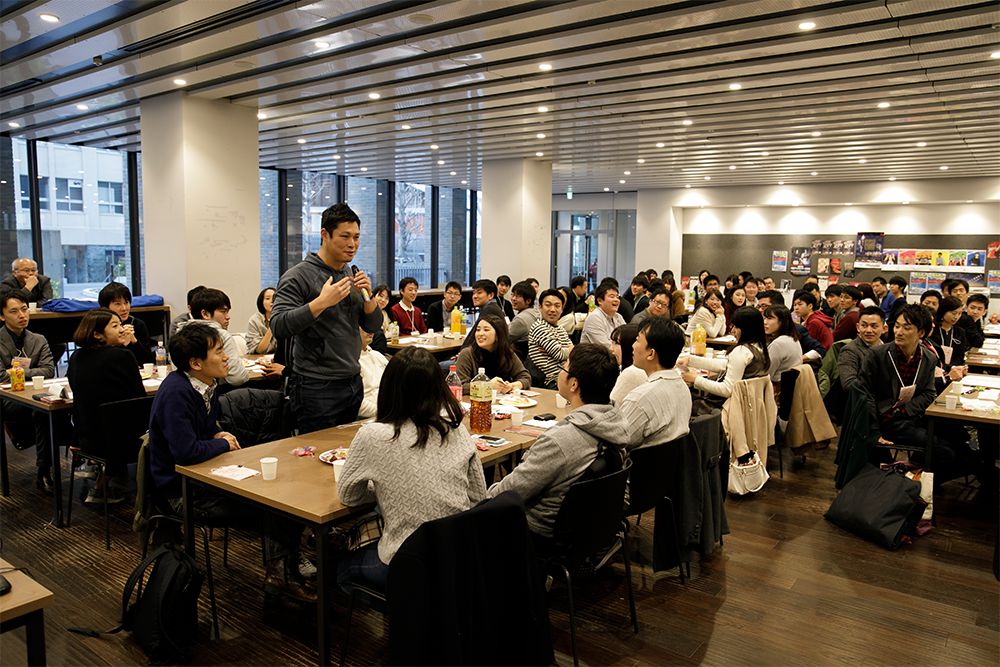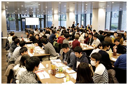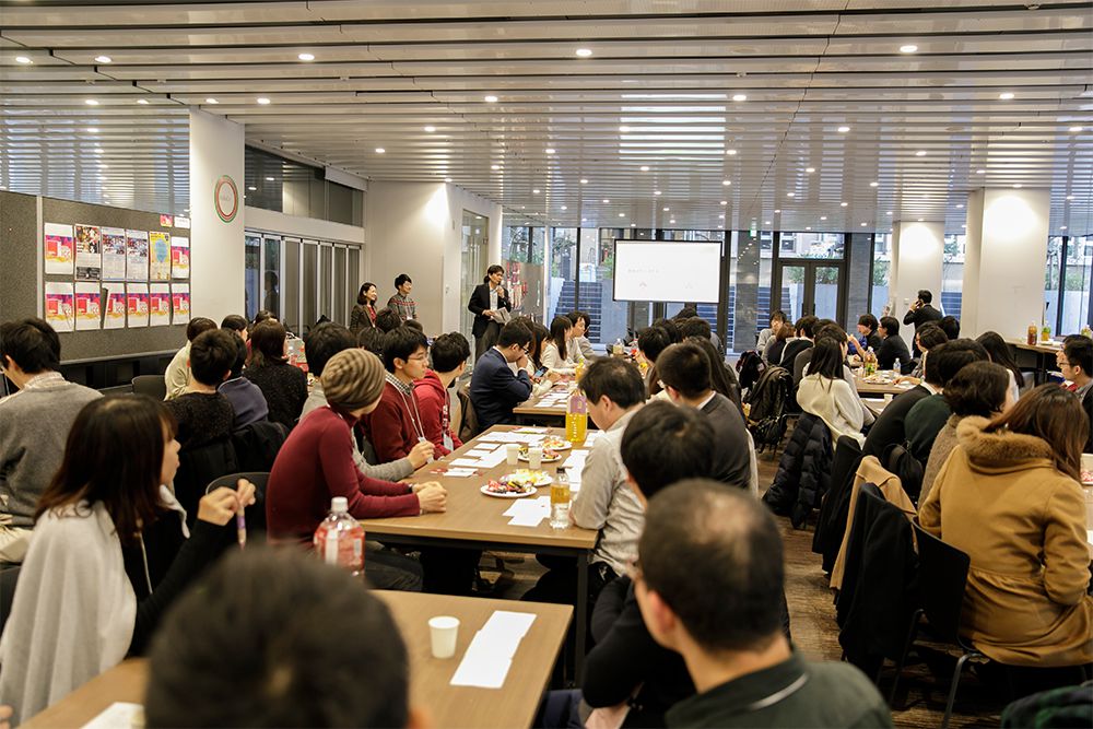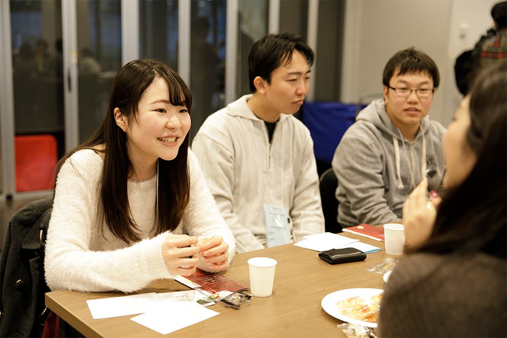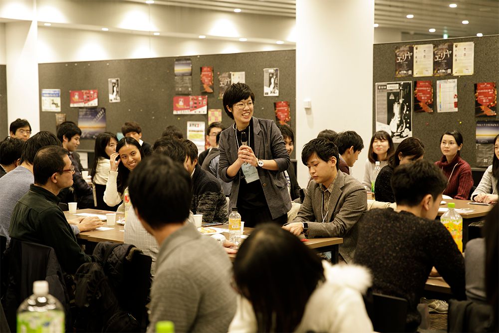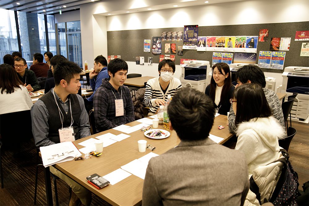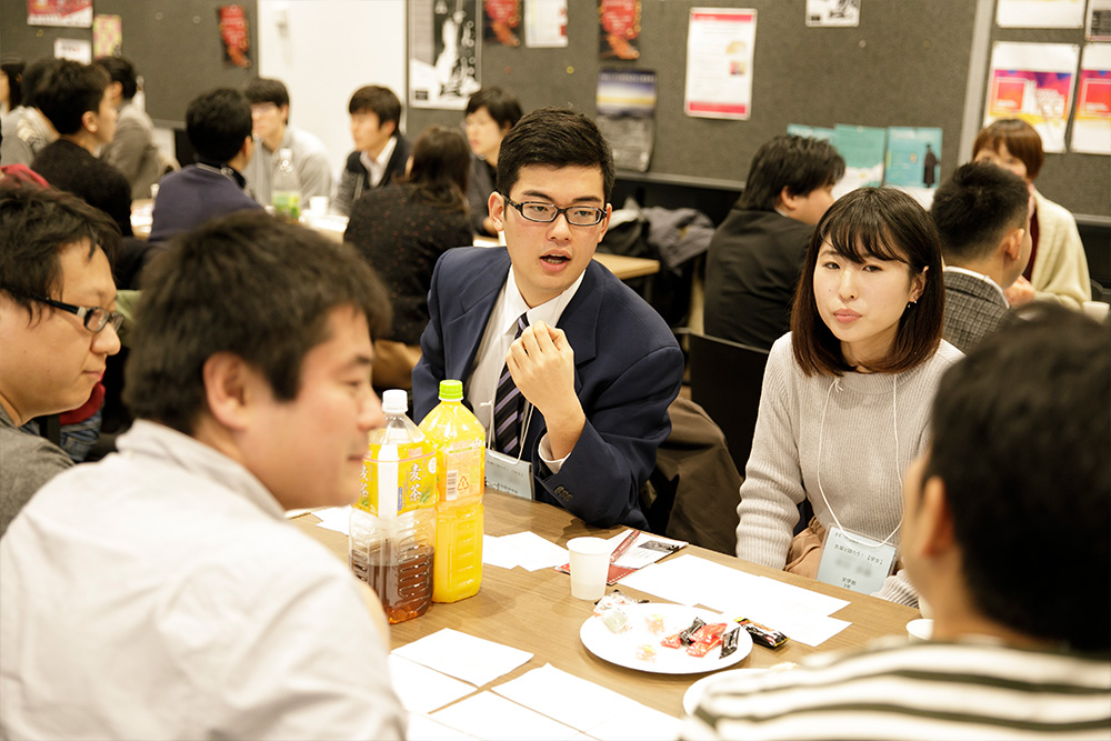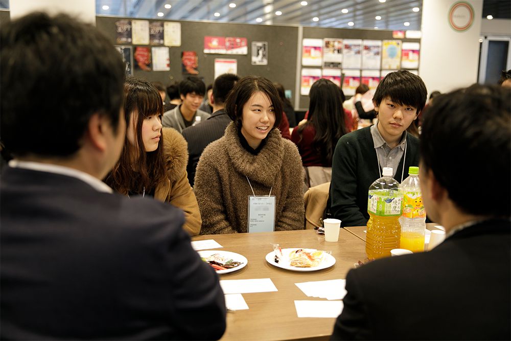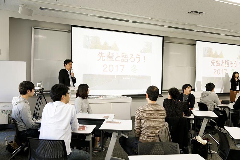 現役学生と若手校友が交流し、学生の就職活動や進学などの将来について気軽に相談できるイベント「先輩と語ろう! 2017冬」を12月17日(日)に開催しました。当日は学生34名、1991(平成3)年以降に卒業した校友45名が参加。4時間にわたるイベントは大変盛り上がり、参加者の皆さんの交流を楽しむ笑顔が溢れました。→ イベント概要はこちら
