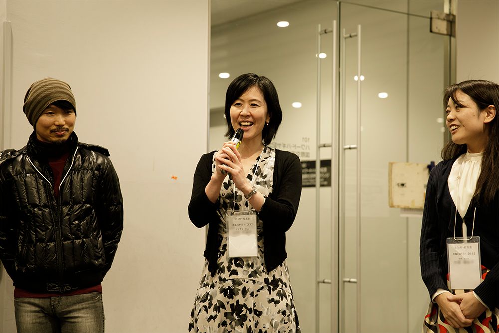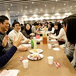 途中から場所を移し、お茶を飲みながら、校友は学生時代から現在の仕事の話まで、学生は現在自分が取り組んでいることや悩みを話していました。各テーブルで話に花が咲き、学生・校友の皆さんの笑顔が見られました。