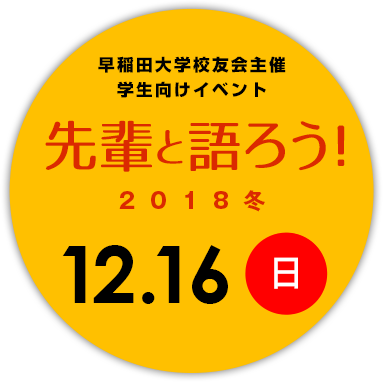 | 対象者 | 校友:1992(平成4)年以降卒業の校友 学生:早稲田大学学生・早稲田大学大学院生 ※応募者多数の場合は、抽選とさせていただきます。 |