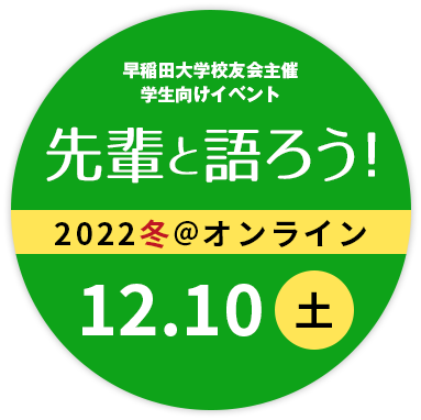 早稲田の校友と現役学生が気軽に楽しく話せるイベントです!(オンライン開催)