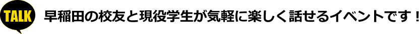 早稲田の校友と現役学生が気軽に楽しく話せるイベントです!
