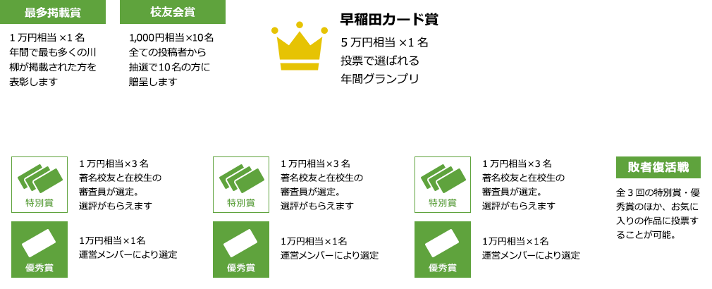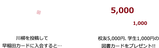 川柳を投稿して早稲田カードに入会すると、校友には、校友会費1年分にあたる5000円、