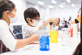 学生注目!透明標本の封入体験するよ!