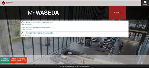 ※MyWasedaのサービス、コンテンツの初回利用は、再度MyWasedaにログインしてご利用ください。