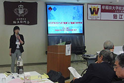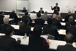 埼玉県支部事務局長会において、校友会武者幹事より、「WHSの背景と校友にとって期待される展開」について説明しました。
