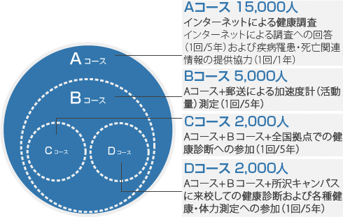 40歳以上の校友を対象に、一人一人の生活習慣と健康状態を20年にわたって追跡調査します。